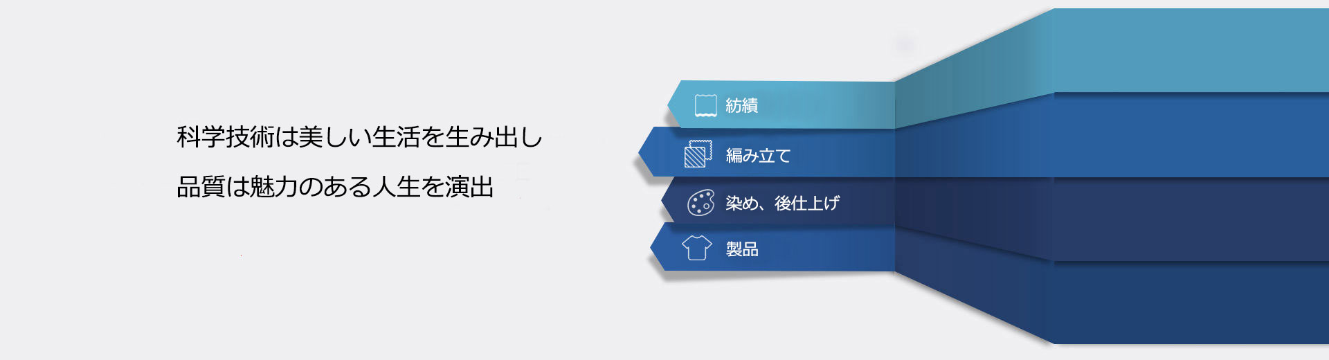 即発集団は1955年に設立、全國の大手繊維、アパレル企業(yè)と鬘、その裝飾品の生産基地であり、主としてメリヤス、シャツ、機能性生地及び鬘、その裝飾品を生産しております。