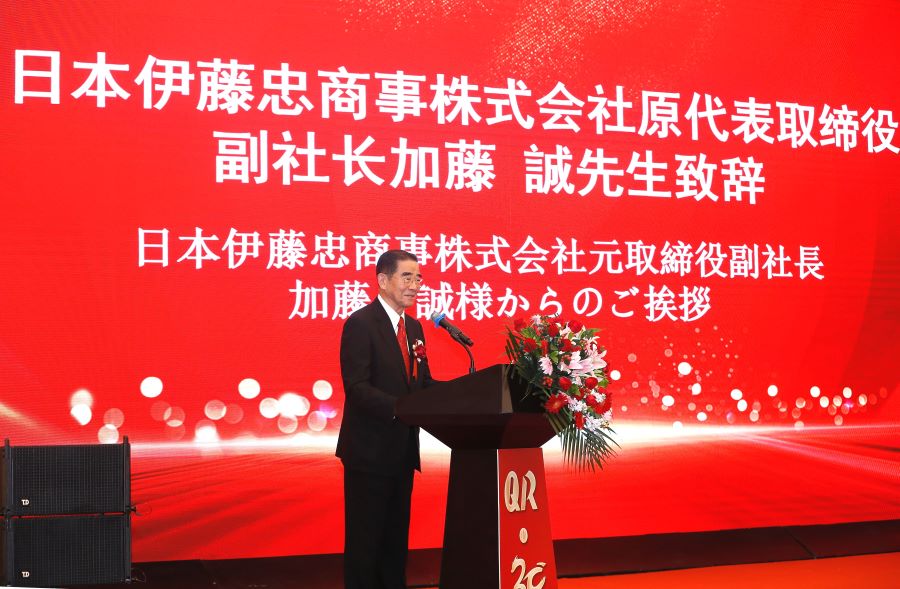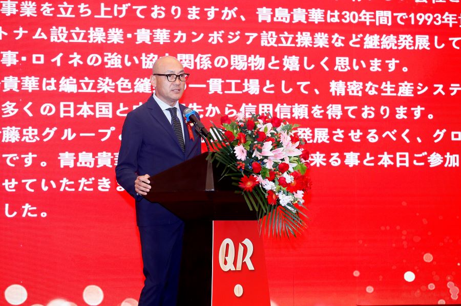日本伊藤忠商事株式會(huì )社原代表取締役副社長(cháng)加藤誠先生在致辭中說(shuō),青島貴華自投產(chǎn)以來(lái),看到生產(chǎn)工廠(chǎng)拓展到越南、柬埔寨,并為保持競爭力不斷努力,我真的很高興、很自豪。去年11月,即發(fā)楊董事長(cháng)專(zhuān)程與青島市和即墨區的領(lǐng)導們一起,訪(fǎng)問(wèn)了伊藤忠商事,談到了青島貴華將加強經(jīng)營(yíng)、發(fā)展的話(huà)題,我對此表示衷心的感謝。希望即發(fā)集團和伊藤忠商事繼續齊心協(xié)力,支持協(xié)助30歲的貴華公司,進(jìn)一步成長(cháng)和發(fā)展!