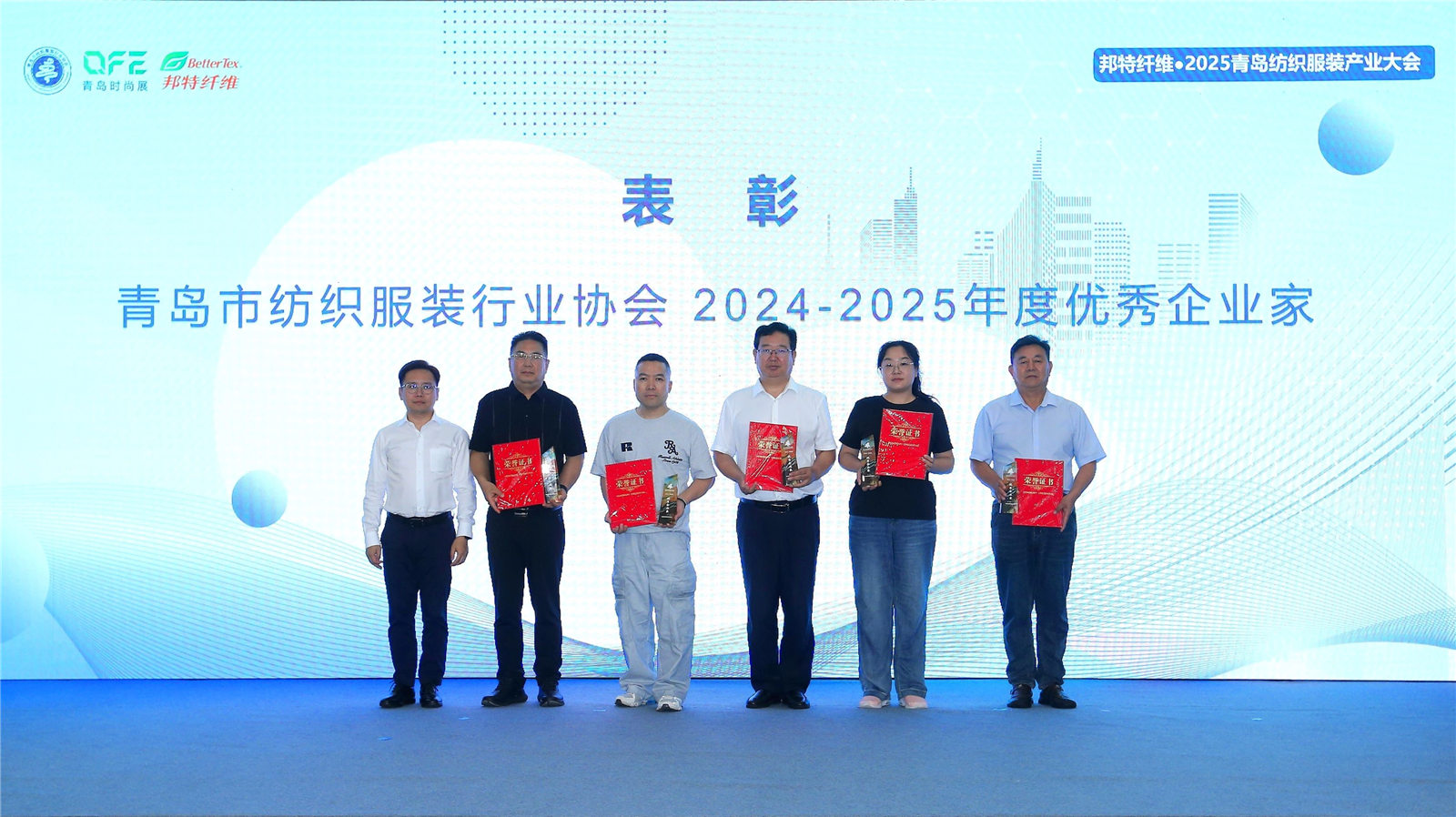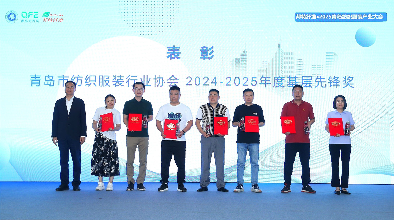 青島市紡織服裝行業(yè)協(xié)會(huì )會(huì )長(cháng)、即發(fā)集團董事長(cháng)楊為東為華和公司江健健等榮獲青島市紡織服裝年度“基層先鋒獎”代表頒獎